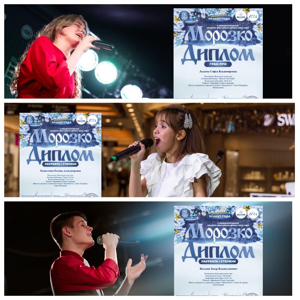 От лица руководителя нашей школы вокала выражаю глубокую благодарность организаторам конкурса за привлечение высокопрофессионального жюри, строгость оценивания, точное соблюдение регламента, открытость результатов, фото и видео в подарок. Рады будем вновь поучаствовать в вашем конкурсе!